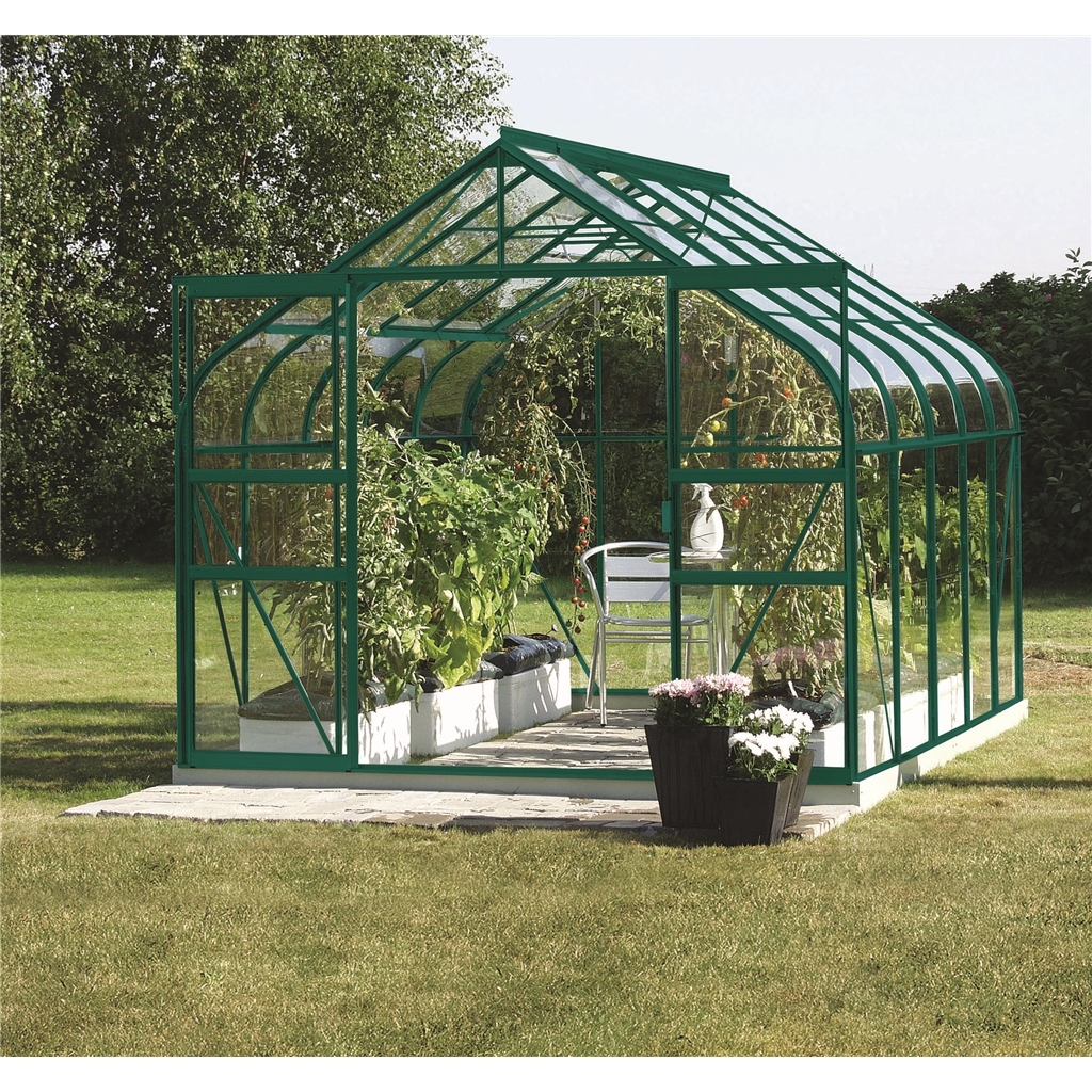 This high quality greenhouse is designed with attractive curved eaves for optimum growing height and sliding double doors. The greenhouse is available in aluminium and green, and multiple sizes. This greenhouse is will meet the needs of beginner and experienced gardeners.