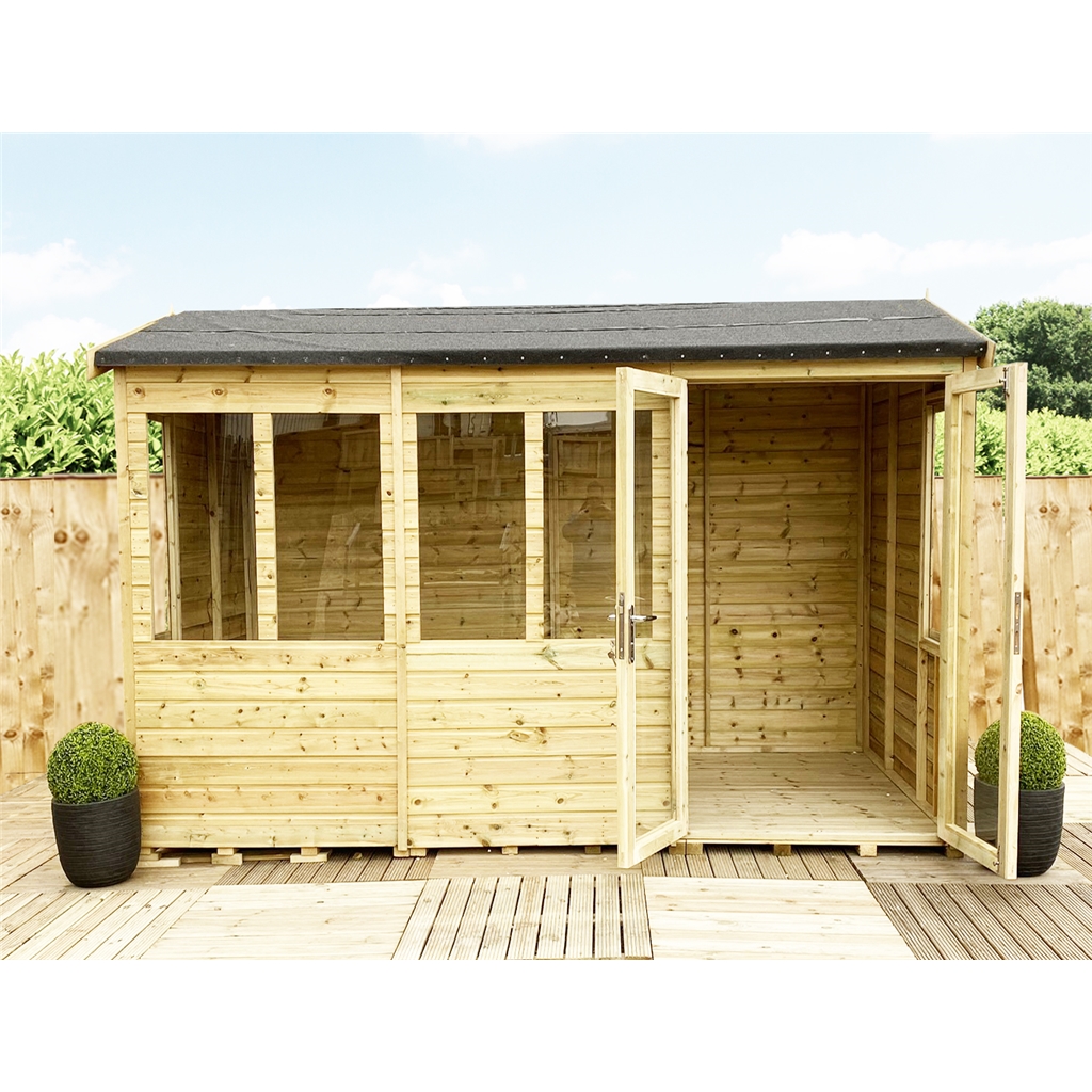 11 X 7 Reverse Pressure Treated Tongue And Groove Apex Summerhouse + LONG WINDOWS With Higher Eaves And Ridge Height + Overhang + Toughened Safety Glass + Euro Lock With Key + SUPER STRENGTH FRAMING