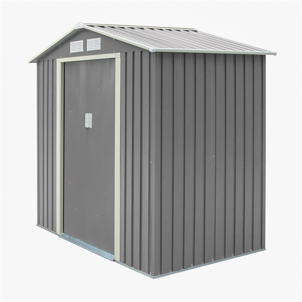 8 x 6 (2.61m x 1.81m) Double Door Metal Apex Shed - Light Grey