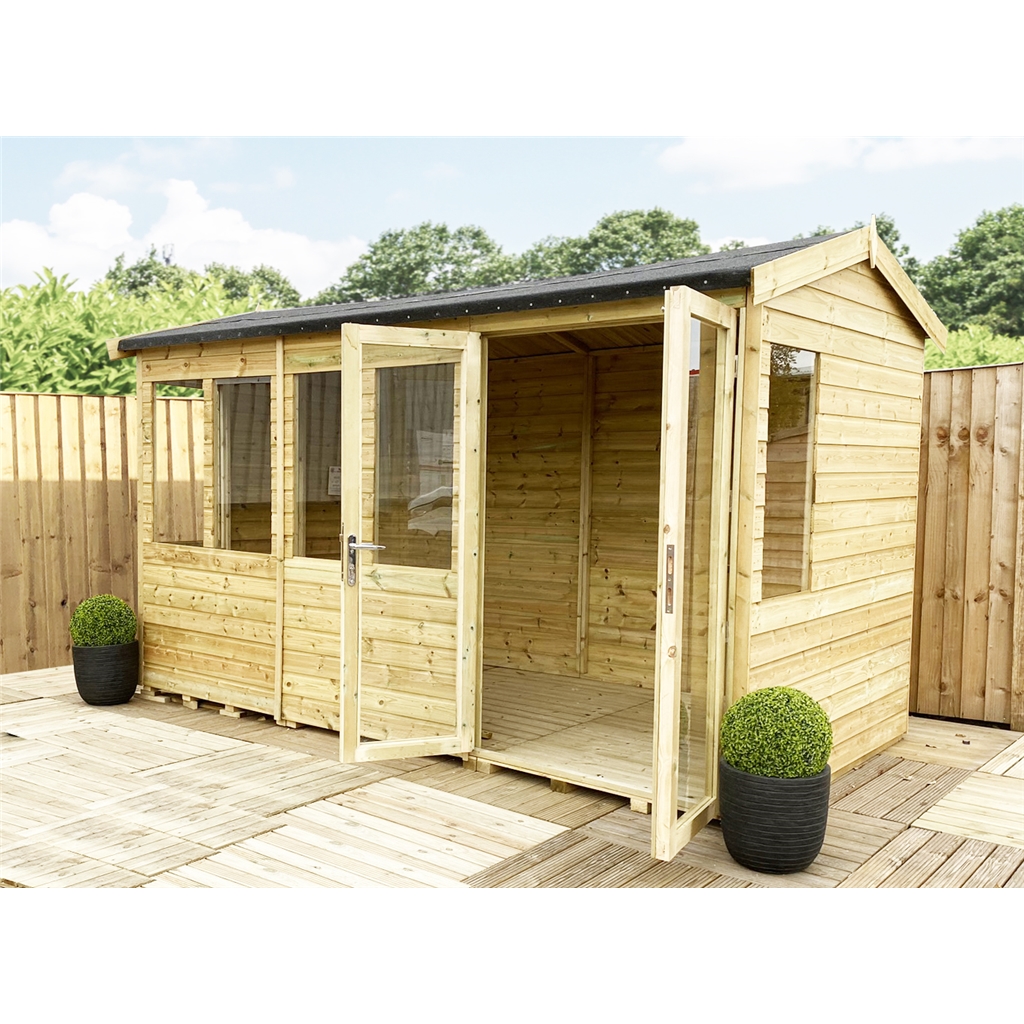 14ft x 10ft REVERSE Pressure Treated Tongue and Groove Apex Summerhouse + Overhang + Safety Toughened Glass + Euro Lock with Key + SUPER STRENGTH FRAMING - BUILT LIKE A TANK