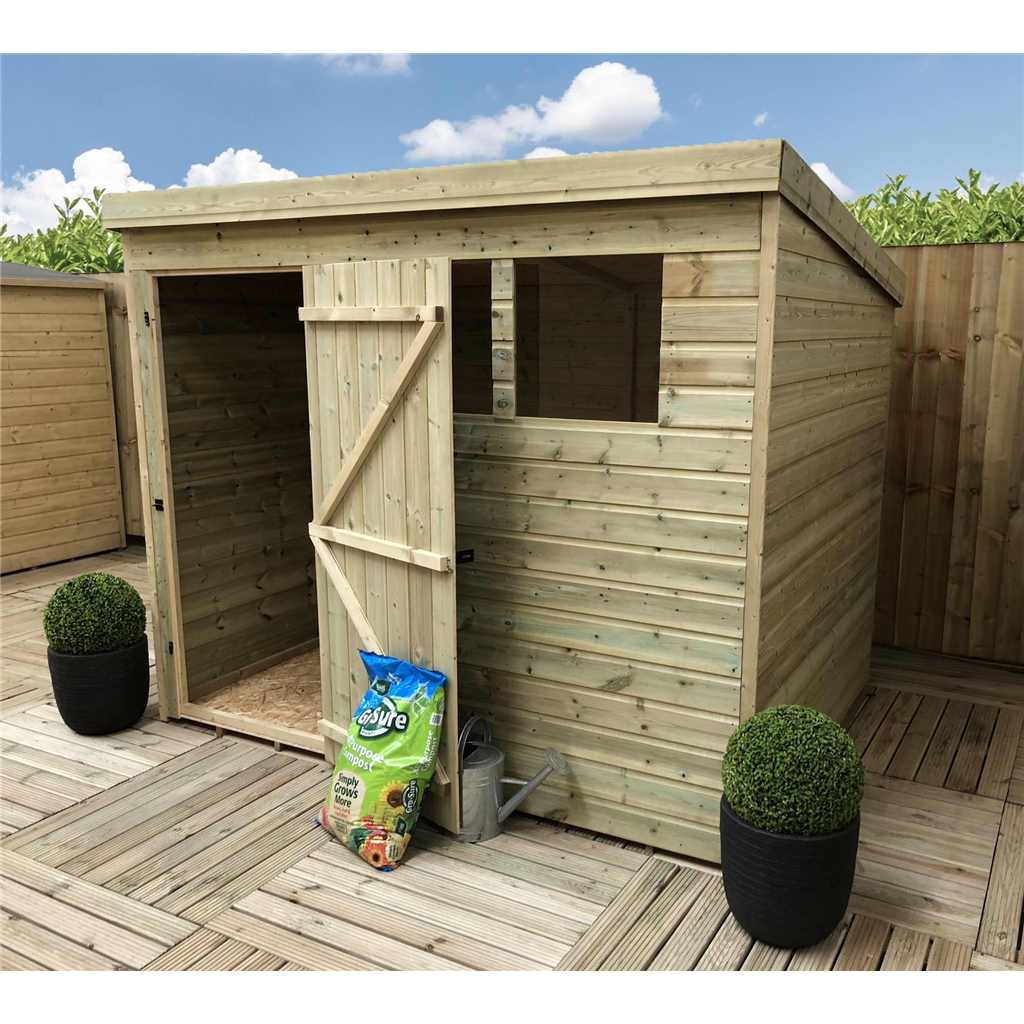 Get the 7 x 5 Pressure Treated Tongue And Groove Pent Shed with 2 Windows and Single Door (Please Select Left Or Right Door) today online, with Free UK Delivery and at an amazing price | No Quibble Returns Policy| Shop Online Today |Free UK Delivery