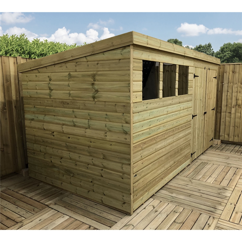 PRODUCT DETAIL MORE INFO 12 X 8 Pressure Treated Tongue And Groove Pent Shed With Double Doors And 3 Windows + Safety Toughened Glass