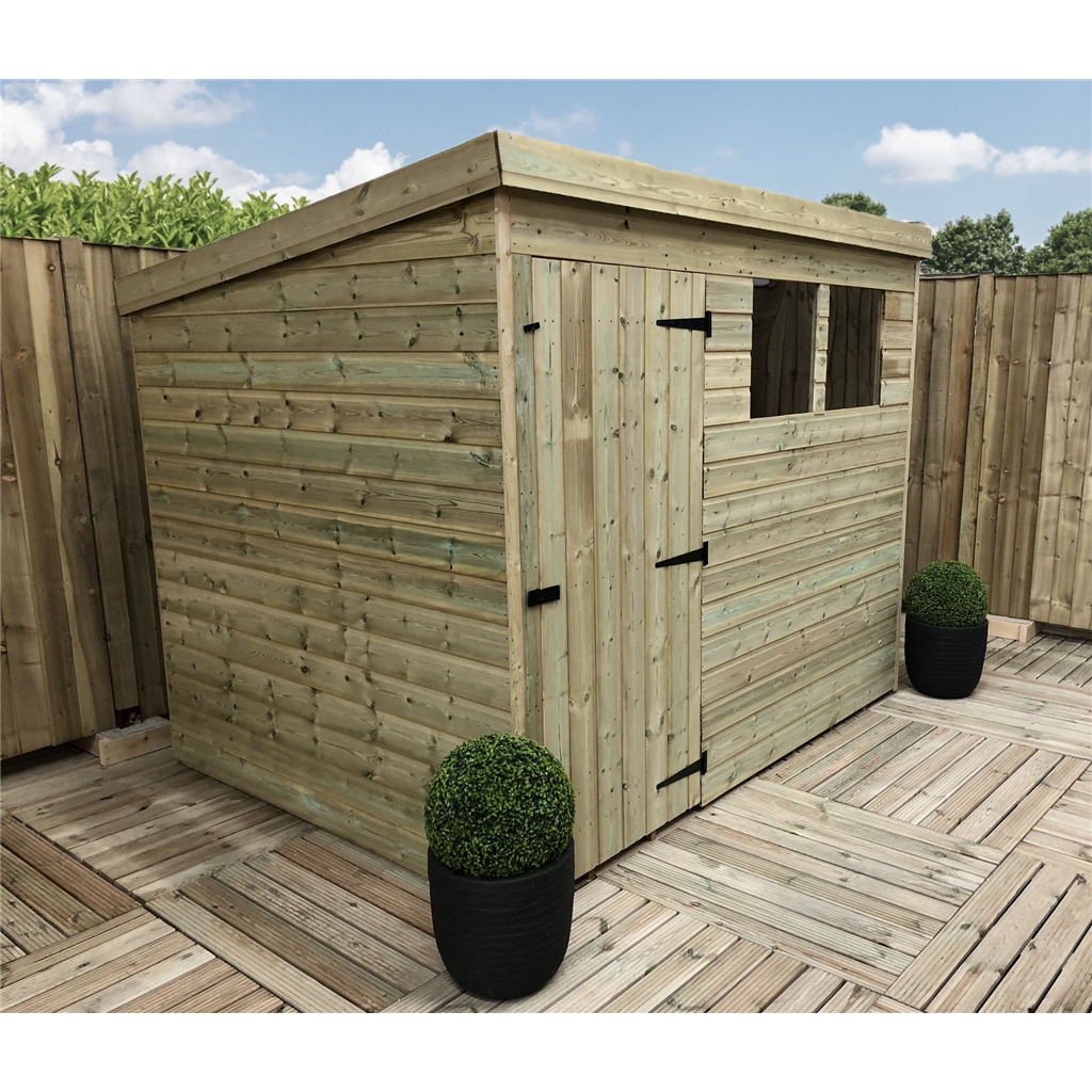 Oundle Pent Sheds (BS): 7 X 3 Pressure Treated Tongue And Groove Pent Shed With 2 Windows And Single Door + Safety Toughened Glass (please Select Left Or Right Door)